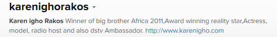 The BBA winner, who left Nigeria late last year, has added her husband's name on all her social media accounts. She's now Karen Igho Rakos. Karen got